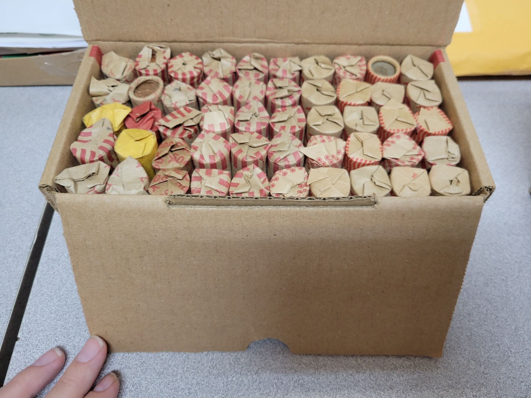 50 rolls of assorted pennies in mint box