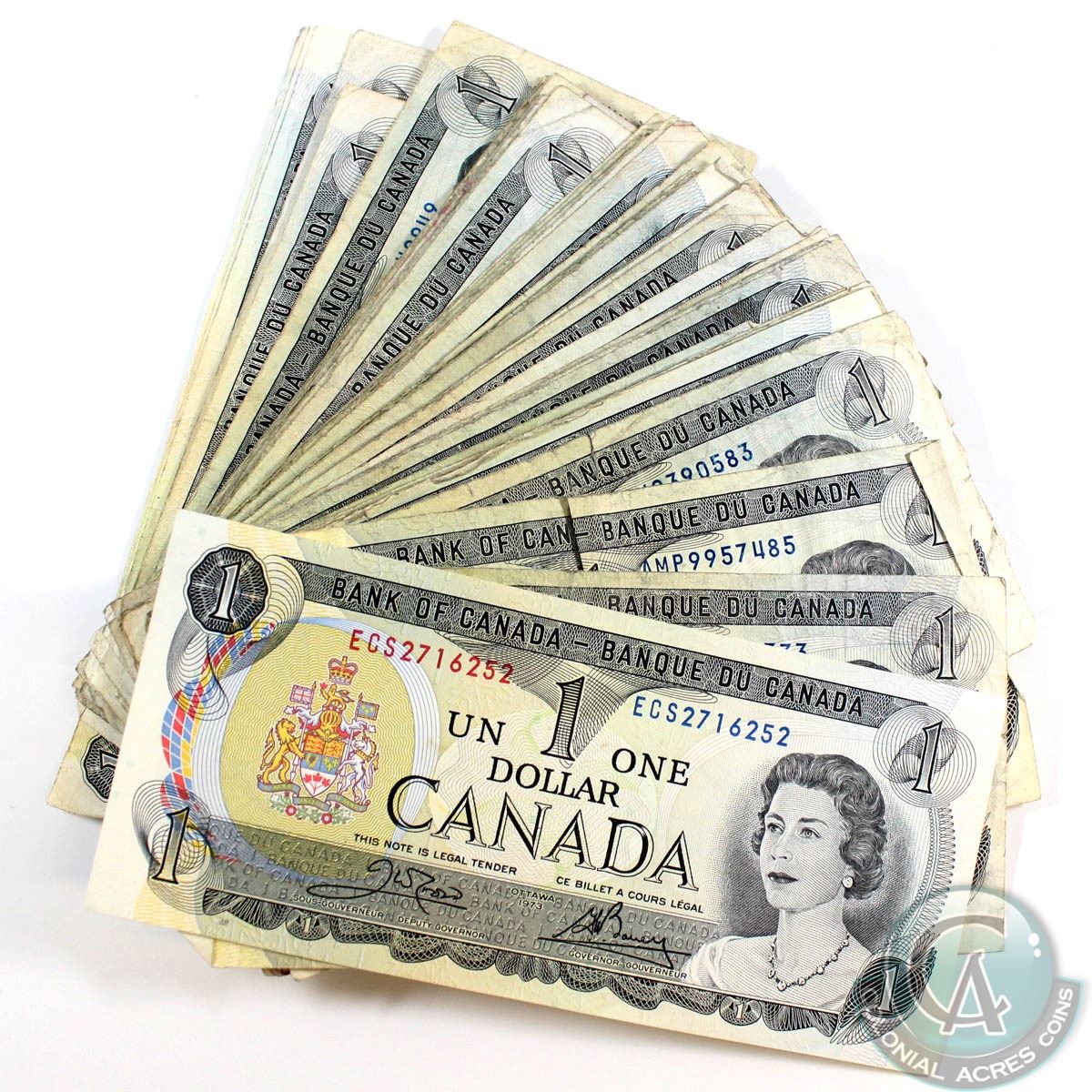 50 x 1973 $1.00 Notes in Average Circulated Condition. 50pcs.