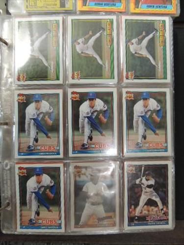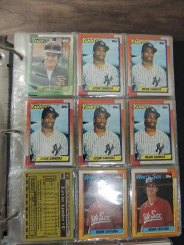 1990 & 91 TOPPS STAR BASEBALL CARDS - MULTIPLES: SOSA, RYAN CLEMENS, THOMAS, ALOMAR AND MORE. 2 RING BINDERS. AS SHOWN. VIEW PICTURE OFR DETAIL.