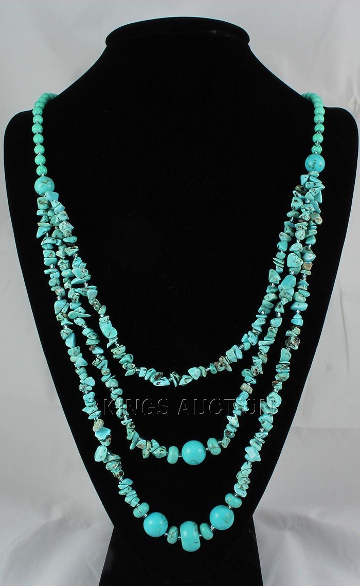 500.91CTW FASHION CHUNKY TURQUOISE NECKLACE **|**|** 35 INCHES 3ROW DESIGN CHUNKY TURQUOISE BEADS NECKLACE ; MSRP: $300