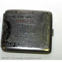 $500 Bill Cigarette Case. The half-size case of a scarcer denomination has a red serial number and b