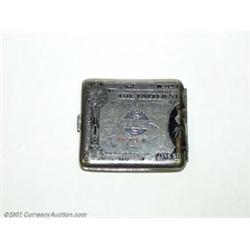 $500 Bill Cigarette Case. The half-size case of a scarcer denomination has a red serial number and blue "500." The clasp and hinge are perfect, and the internal clip to hold the cigarettes is present and operable. Important notice: We expect to be auctioning lots at the rate of 200-250 per hour. Sometimes eBay Premier live bid software cannot keep up with that pace, so we strongly recommend that you place a realistic proxy bid now as insurance to avoid disappointment. Also please note that all Heritage/CAA lots purchased through eBay Premier carry a 20% Buyer's Premium. Please make sure you read the Terms and Conditions.