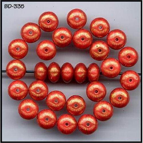 Please note that for Ebay Live Auctions only bids at or above $150 will be successful and meet our reserve!!! 500 + BEADS....These are gorgeous, unusual Czech Vintage opaque brick red glass oblate (disk) shape beads with gold metallic finish. Dimension : approximately 9mm in diameter, 6 mm thick. Quantity : 500 beads. To show better detail, pictured is (washed) randomly picked assortment, which contains only few beads - but remember, you are buying lot, which has at least 500 (five hundred) beads... The beads accumulated over the years some dust and may need to be washed. Comparable (new) beads retail at $0.75 per bead, which would make value of this lot $375, our Ebay Live Auction reserve is much less ($150). We have large quantity of Vintage beads (close to 400 styles) - designers and dealers please inquire.