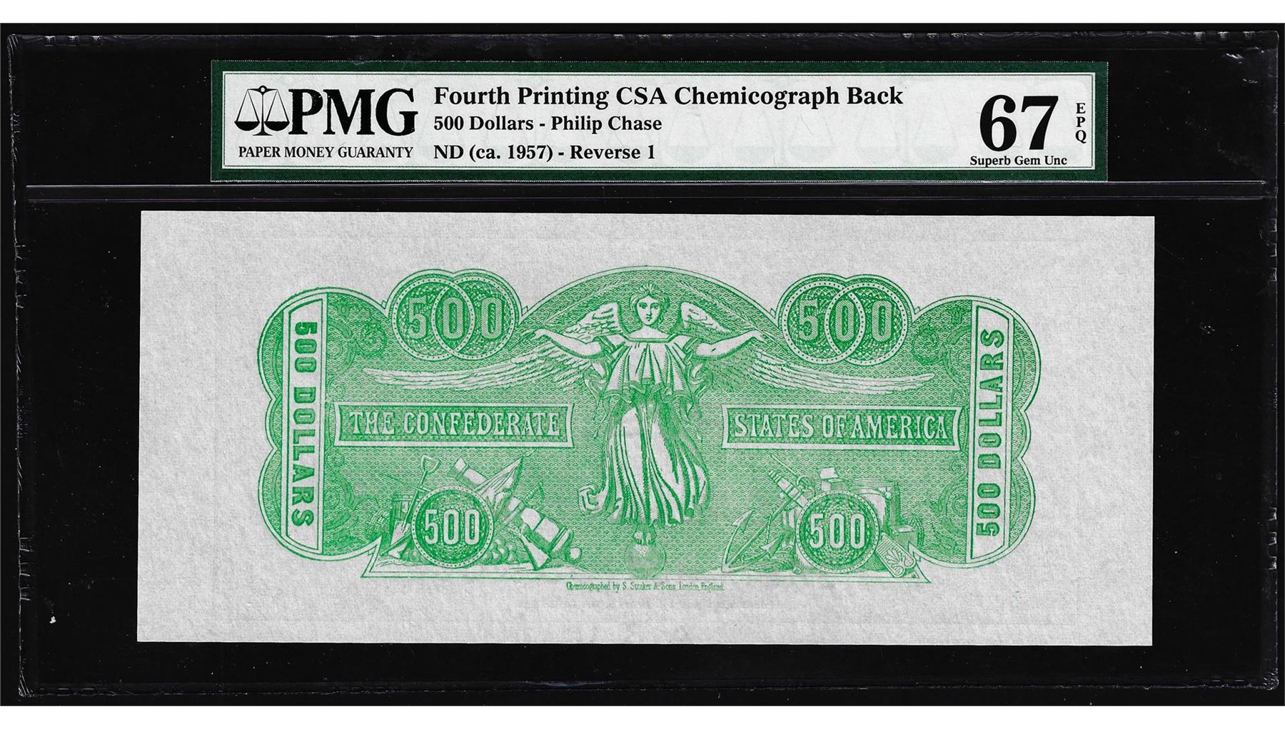 $500 Chemicograph Back Confederate Currency Note PMG Superb Gem Uncirculated 67EPQ
