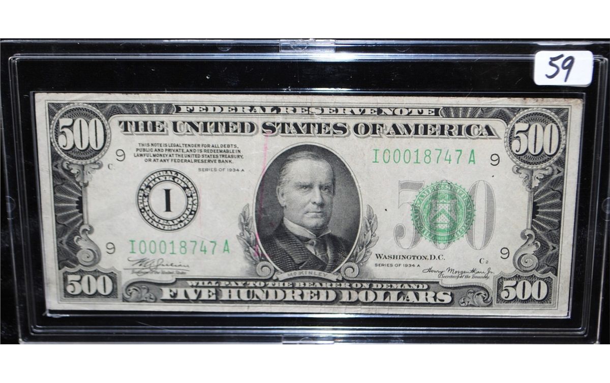 $500 FEDERAL RESERVE NOTE - SERIES 1934 A - WASHINGTON DC