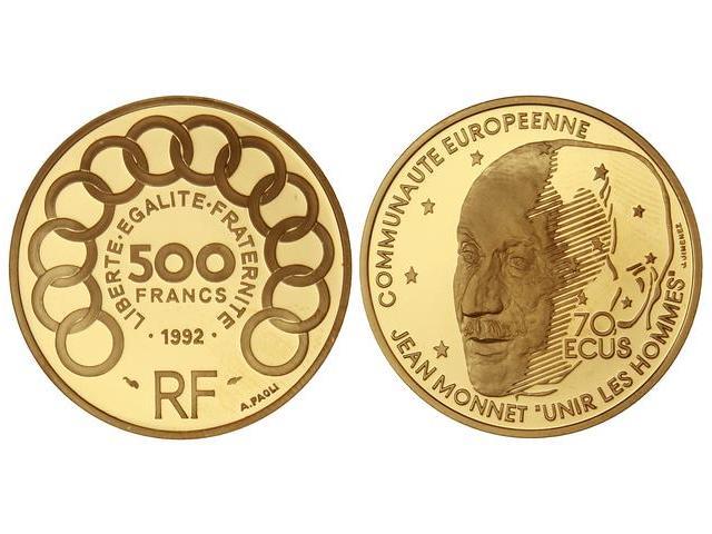 500 Francos-70 Ecus. 1992. AU. Monet. En estuche original, con certificado. KM-1013. PROOF.