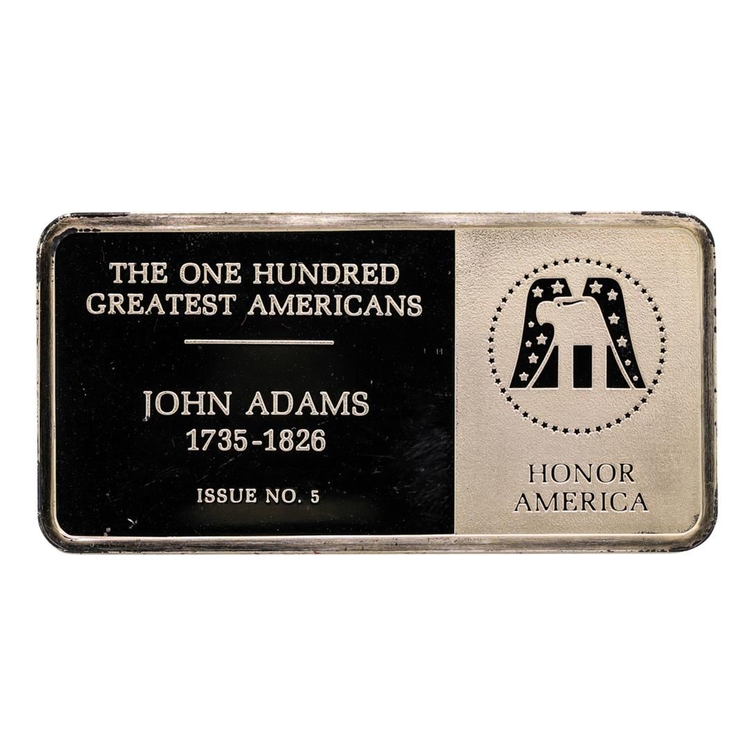 One 500 Grain Sterling Silver Franklin Mint 100 Greatest Americans Ingot.