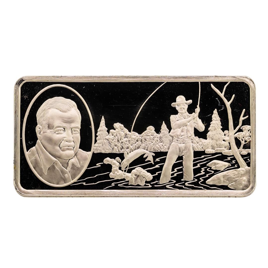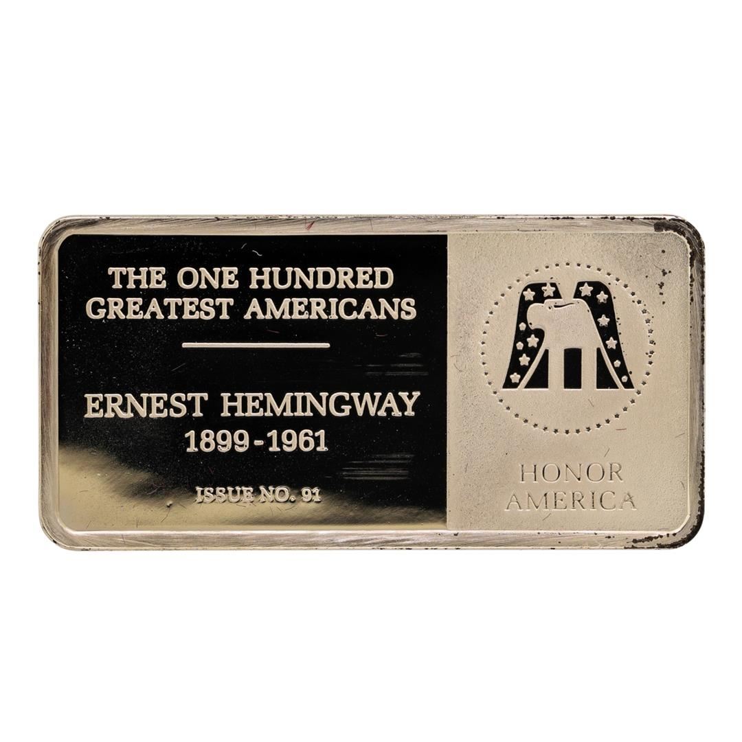 One 500 Grain Sterling Silver Franklin Mint 100 Greatest Americans Ingot.