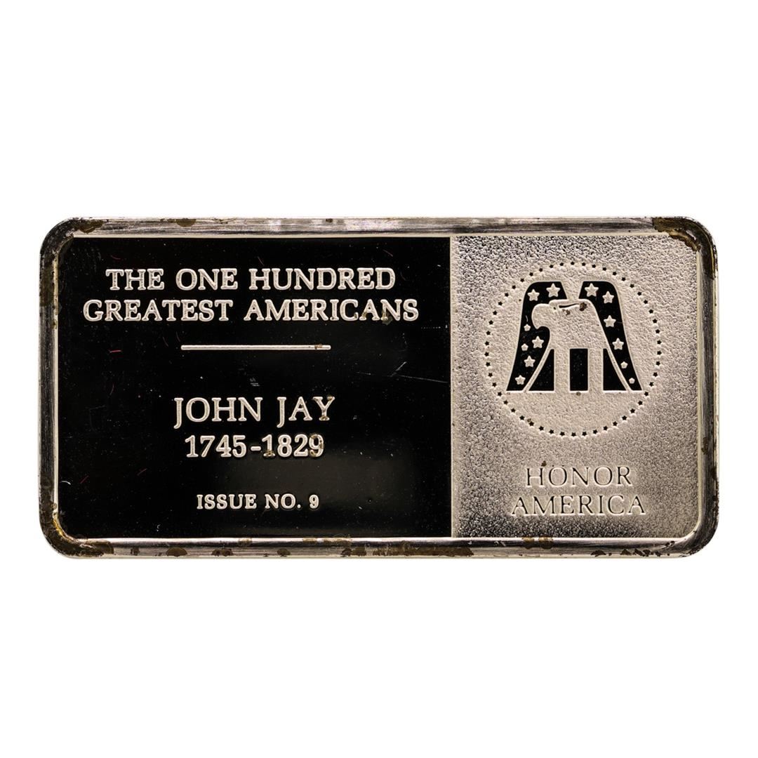 One 500 Grain Sterling Silver Franklin Mint 100 Greatest Americans Ingot.