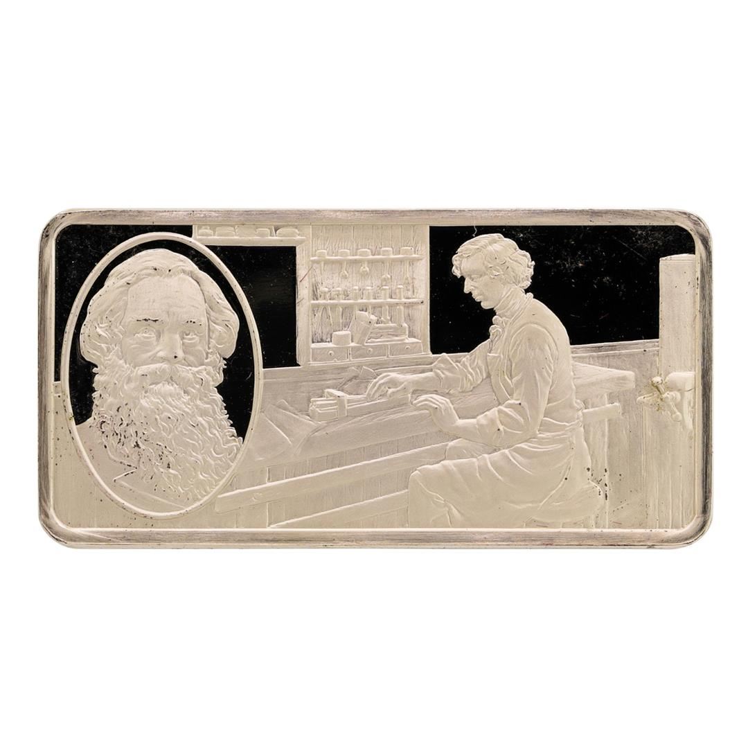 One 500 Grain Sterling Silver Franklin Mint 100 Greatest Americans Ingot.