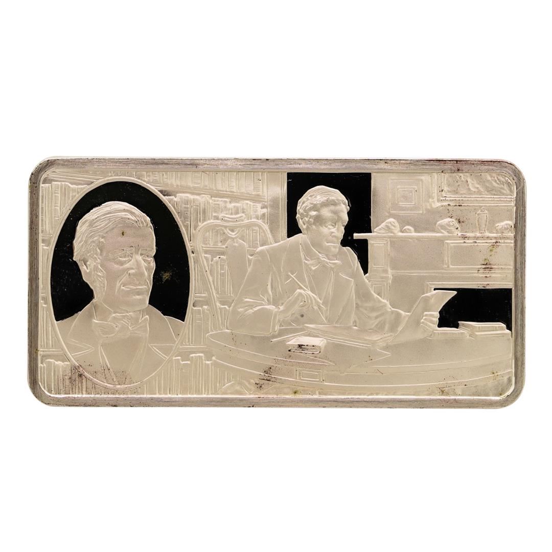 One 500 Grain Sterling Silver Franklin Mint 100 Greatest Americans Ingot.