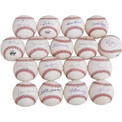 <B>500 Home Run Club Single Signed Baseballs Lot of 17.</B></I> We'll let you track down the Ruth, Ott and Foxx, but we've got the rest here for you! All are signed in 9/10 or better blue ink, and appear on the sweet spot of Official American, National or Major League baseballs. Present are: Aaron, Banks, Bonds (with personal marketing sticker), Griffey, Jackson (notated "523 HR's"), Killebrew, Mantle (ball shows yellow toning), Mathews, Mays, McCovey (notated "521 HR's"), McGwire (notated "70" and "'03"), Murray, Palmeiro, Robinson, Sosa (notated "98 NL MVP"), Robinson (notated "HOF 82"), Schmidt (notated "548") and Williams. <I>LOA from PSA/DNA.</B></I>
