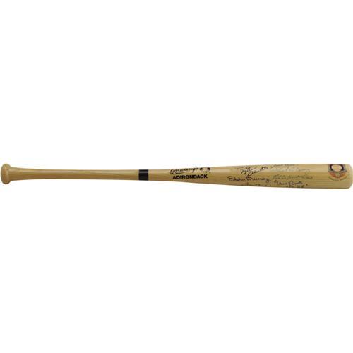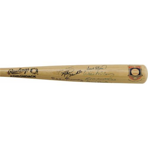 <B>500 Home Run Club Signed Bat.</B></I> A Rawlings Big Stick bat with a Hall of Fame logo decal near the barrel end makes a fitting home for perfect blue sharpie signatures from ten of the men who powered their way to the 500 home run mark. Present and accounted for are Aaron, Schmidt, Murray, Mays, Jackson, Killebrew, Robinson, McCovey, Mathews and Banks (who adds "512 HRs" inscription). Plenty of space is left to add the rest of the living Club members should you decide to do so. <I>LOA from PSA/DNA.</B></I> <BR><BR><B>Important notice:</B> Heritage usually auctions material at the rate of 200-250 lots per hour. On some occasions eBay Live bid software or the Internet may not be able to keep up with the pace of the auction. We recommend placing a realistic absentee bid now as insurance to avoid disappointment. Occasionally the auctioneer may eliminate or reject an eBay Live bid, and the auctioneer may also reopen a lot after the close of the eBay live bidding (usually because we missed an audience bid), and may reject your bid even if it shows you as the winning bidder. By bidding via eBay Live, you agree that Heritage may award the lot to another bidder at its sole discretion under the circumstances described above or any other reasonable circumstances. Since eBay bids are not shown to us until we open the lot on the floor, we treat those bids just like floor bids. In most cases the floor responds before the eBay bid is presented to us, due to Internet lag time, so for consistency we have made it a policy that floor bids are always considered first over tie eBay live bids. Also please note that all Heritage lots purchased through eBay Live carry a 22.5% Buyer's Premium. Please make sure you read the Terms and Conditions before you bid. This lot is being auctioned in conjunction with a live floor auction by Heritage Galleries & Auctioneers. All final auction and invoice information will be supplied by Heritage Galleries & Auctioneers, and all other information should be considered preliminary. Lot:19124 <BR><BR><B>Winning Notification and Billing:</B> After the FINAL session in this auction is complete, Heritage will send e-mail and snail mail invoices. This process normally takes several days. All final auction and invoice information will be supplied by Heritage Galleries & Auctioneers, and all other information should be considered preliminary. <BR><BR>This auction will be conducted on a live auction floor and over the Internet through eBay Live. If you choose to place an absentee bid, please take a moment to <font color='#0000ff'><u><a href='http://pages.ebay.com/liveauctions/help/before/laabsentee.html'>learn how eBay Live absentee bidding works</a></u></font><font color='#000000'>