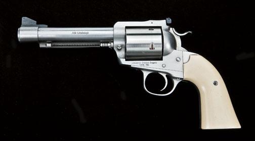 .500 Linebaugh custom single-action revolver on Ruger Bisley frame, 5-1/2” barrel, target sights, ring muzzle, remanufactured extractor, simulated ivory grips, marked “Linebaugh custom six guns, WY” on left side of frame, serial #86-47702. The pistol is fine to excellent showing no evidnce of firing. There is a small “8” assembly type number on the back of frame and back of cylinder. In Ruger unlabelled box, see ammo and paperwork. Est: $1,000 - $2,000