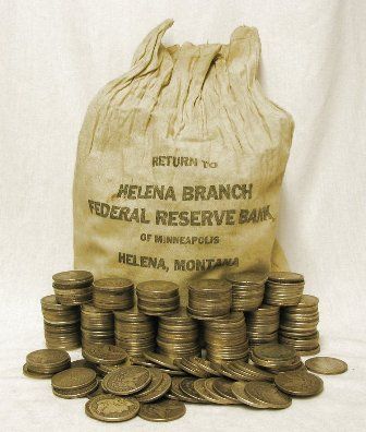 A bank bag full of unsearched circulated morgans