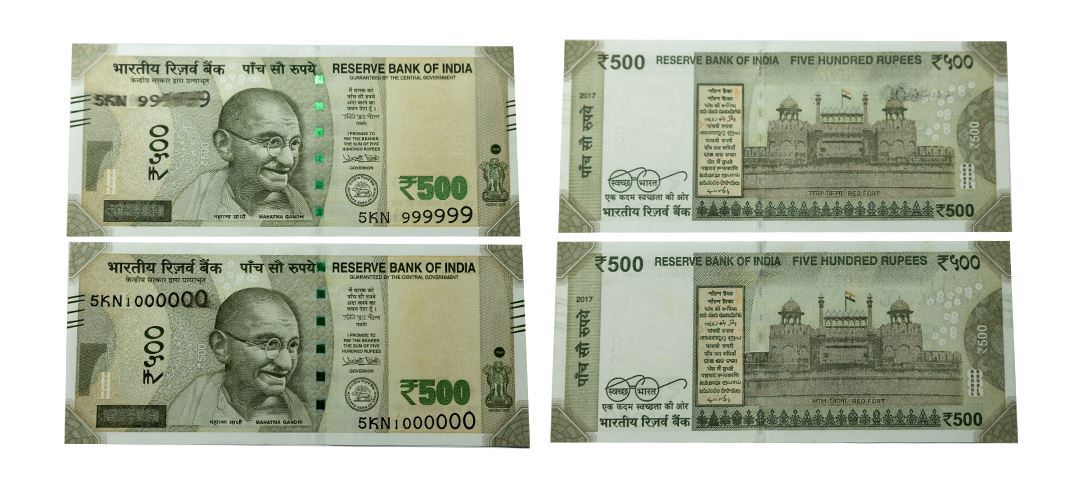 500 Rupees, 2 notes, 5KN 999999 & 5KN1000000, Erros, Misprint, 2017, Signed by Urjit patel,