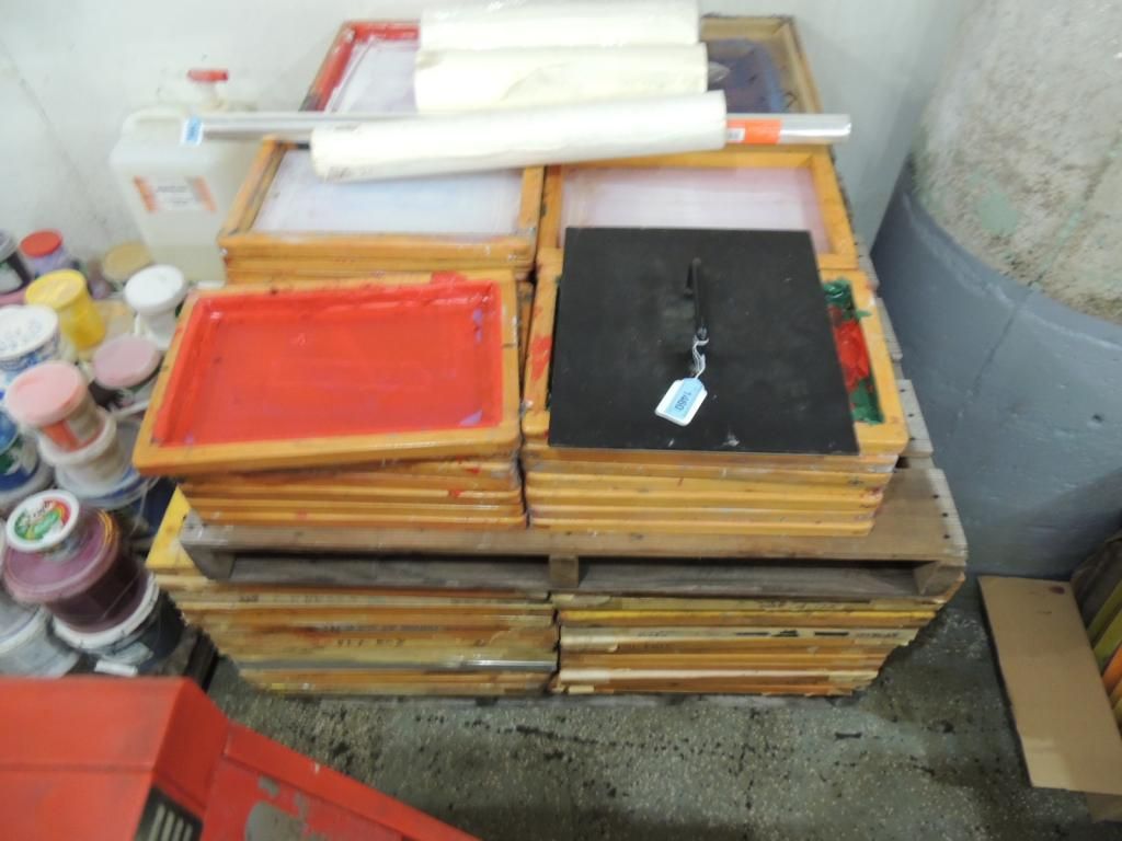 SILK SCREEN IN FRAMES WITH SCREENS AND ART WORK INCLUDED. COMPLETE TURN KEY SILK SCREEN BUSINESS OPPERTUNITY SET UP SCREENS. AS SHOWN SEE PHOTO FOR MORE DETAILS.