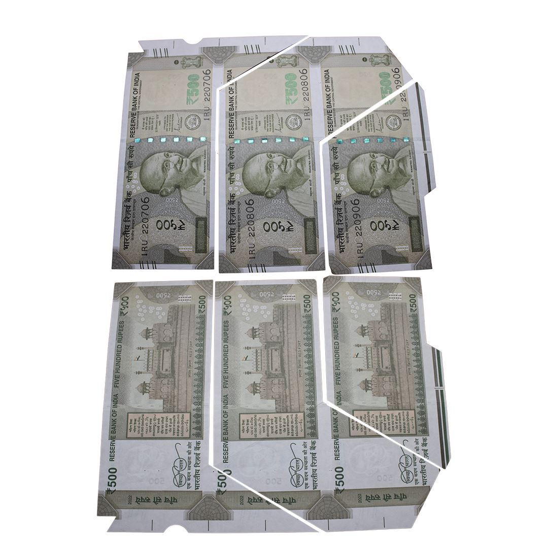500 rupees, misprint notes (3), new Gandhi series, 2022, signed by Shaktikanta Das, inset 'C', serial nos.: 1RU 220706, 1RU 220806, 1RU 220906; Sheet fold cutting error. (3 notes) About Uncirculated, Rare.