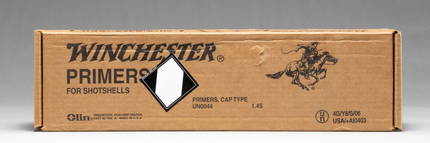 Sealed 5000 ct. case of Winchester W209 shotshell primers. CONDITION: box is sealed with some storage wear on edges. (02-25027-14/MJC). $200-300.