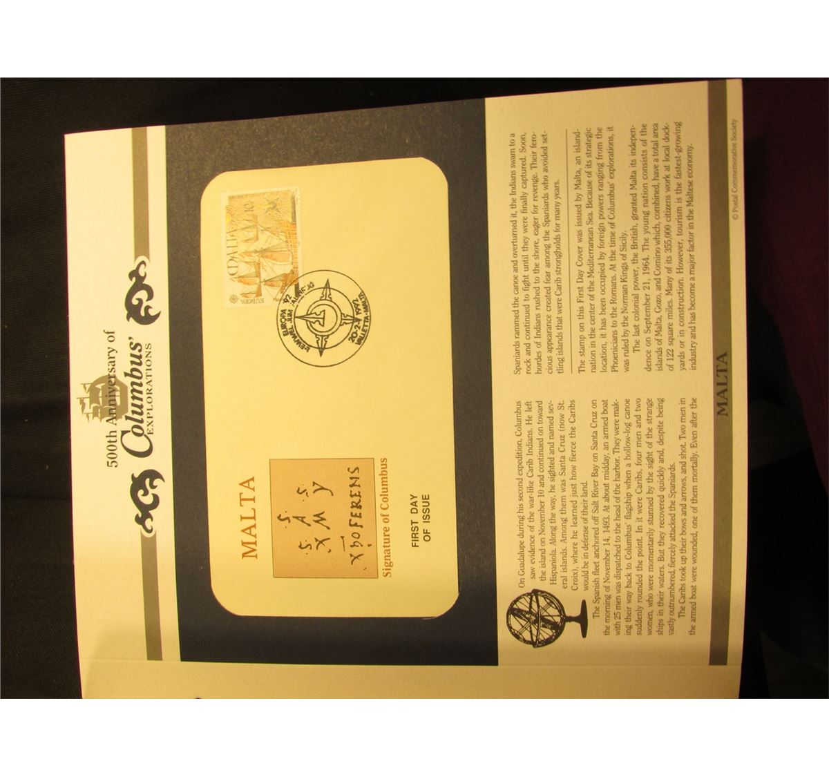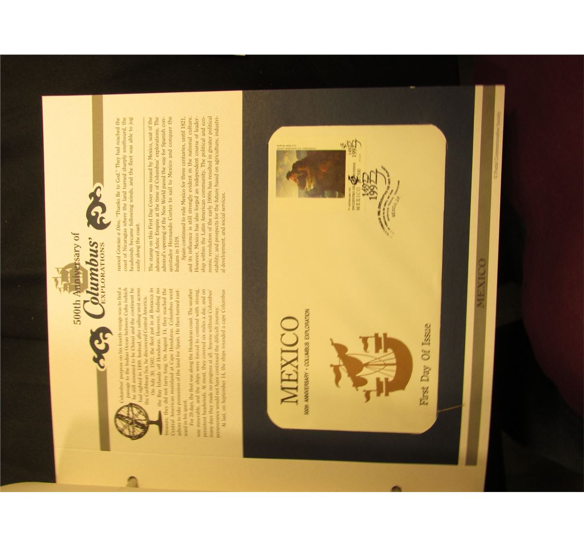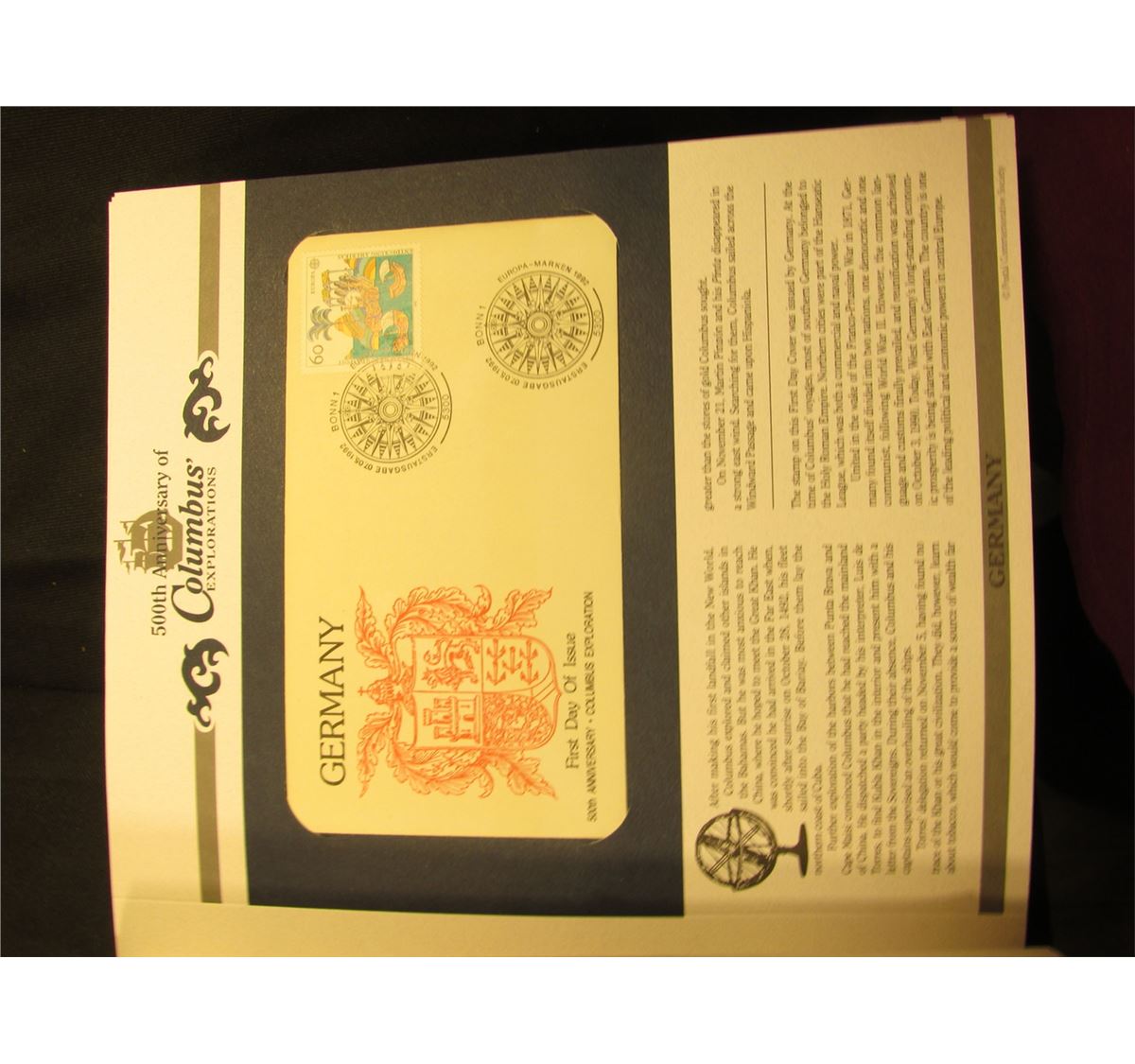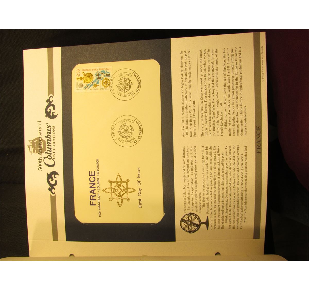 "500th Anniversay of Columbus' Explorations" Large Album from "Postal Commemorative Society" containing (80) "First Day of Issue" Covers with stamps and Postmarked in various countries, which related to Columbus' travels.