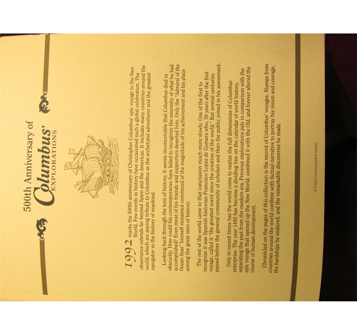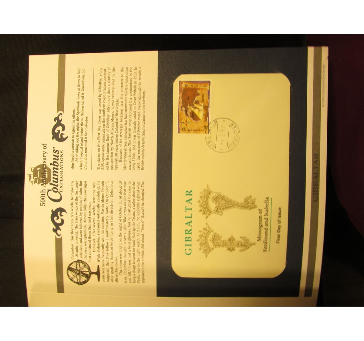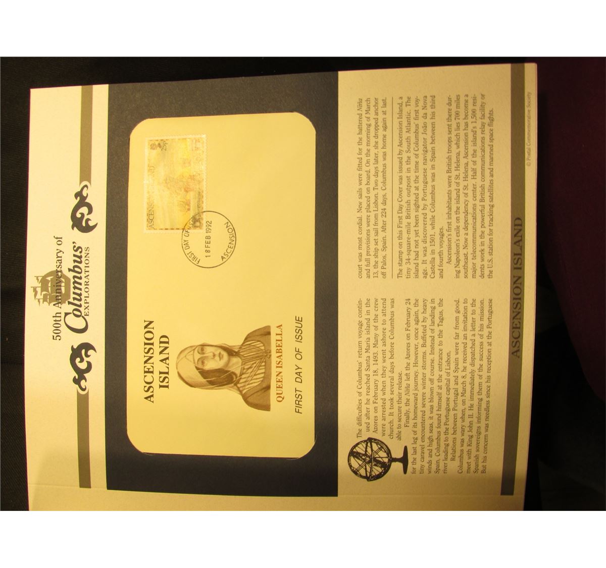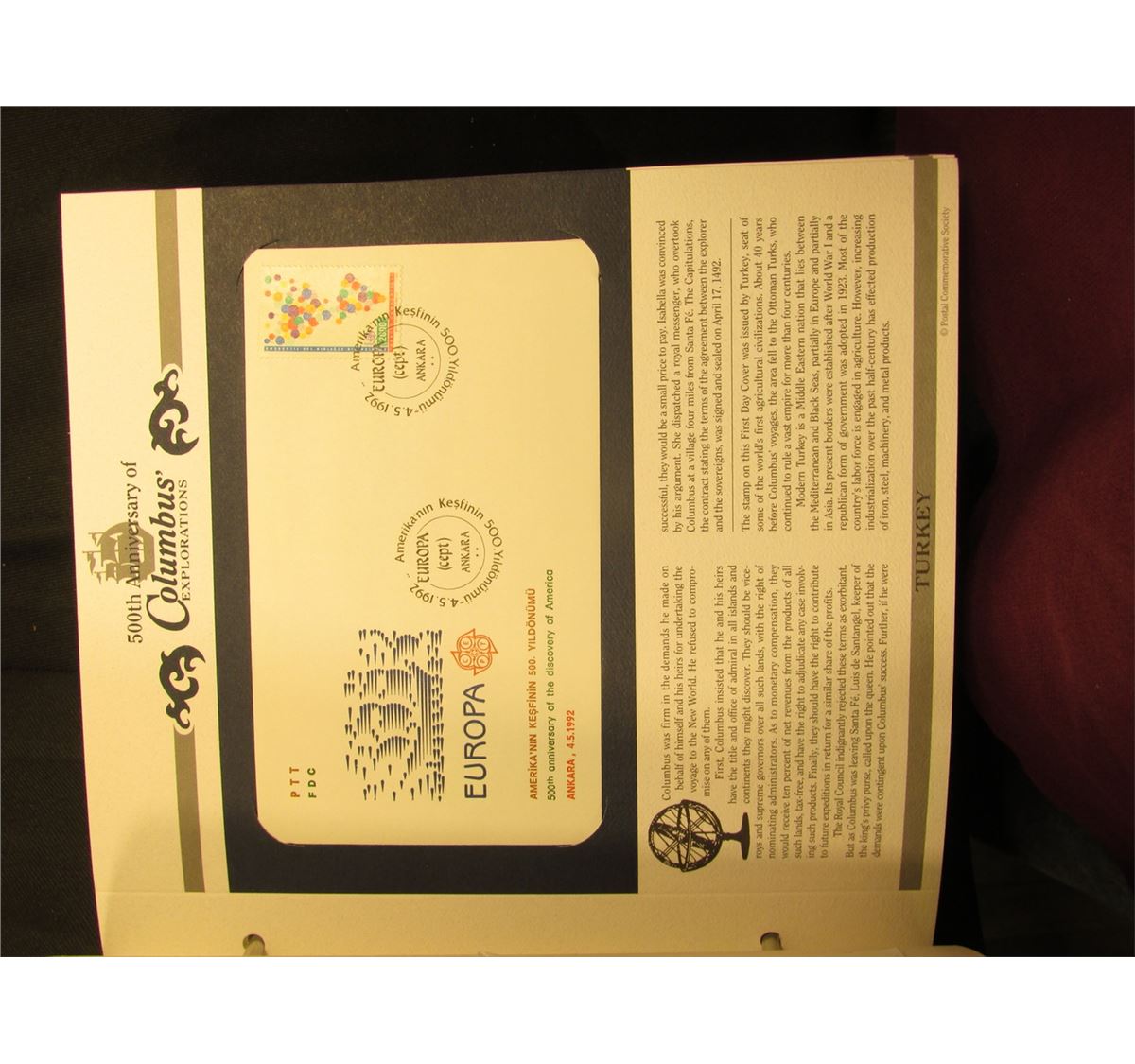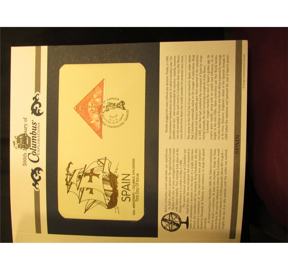 "500th Anniversay of Columbus' Explorations" Large Album from "Postal Commemorative Society" containing (80) "First Day of Issue" Covers with stamps and Postmarked in various countries, which related to Columbus' travels.