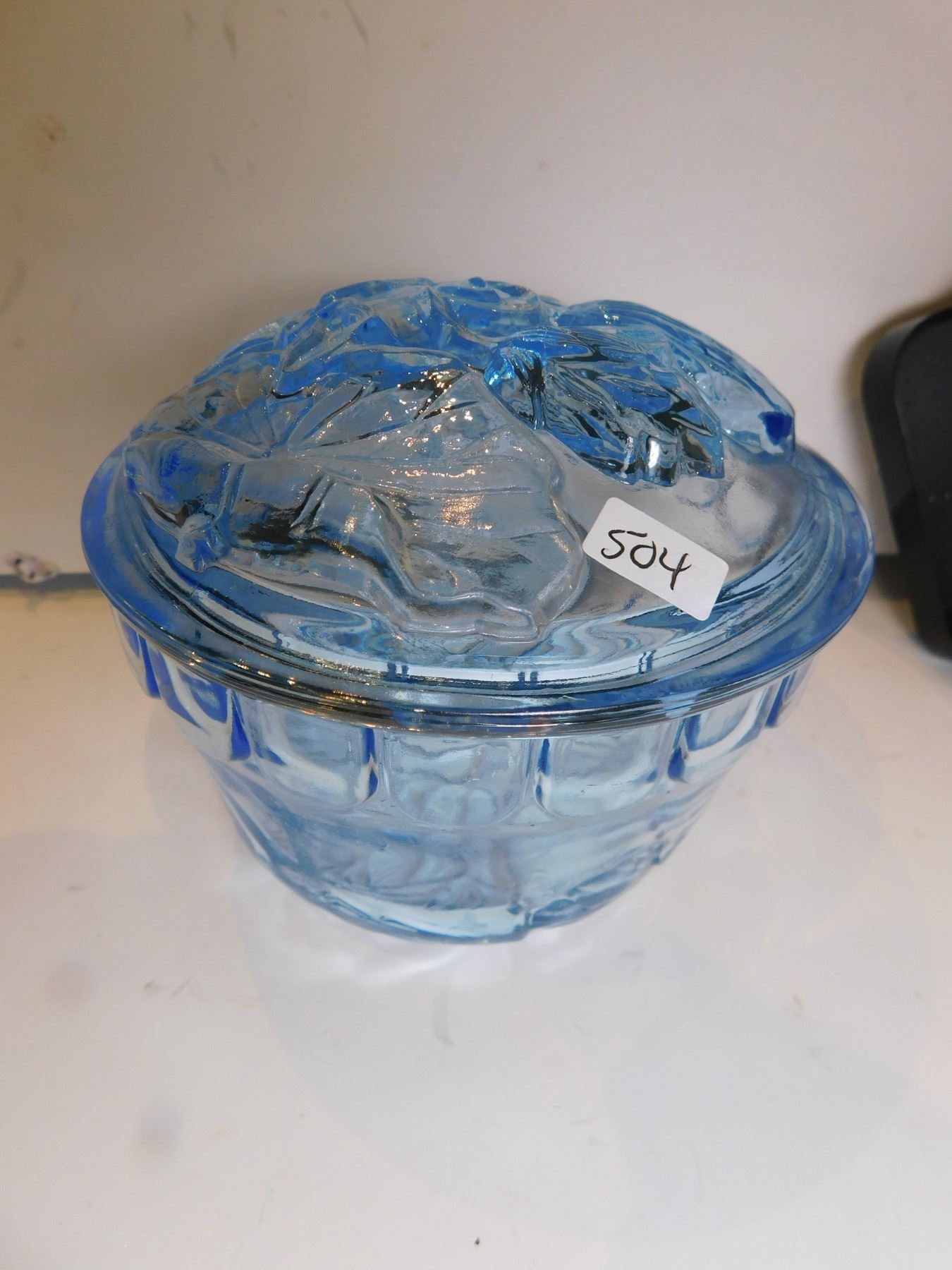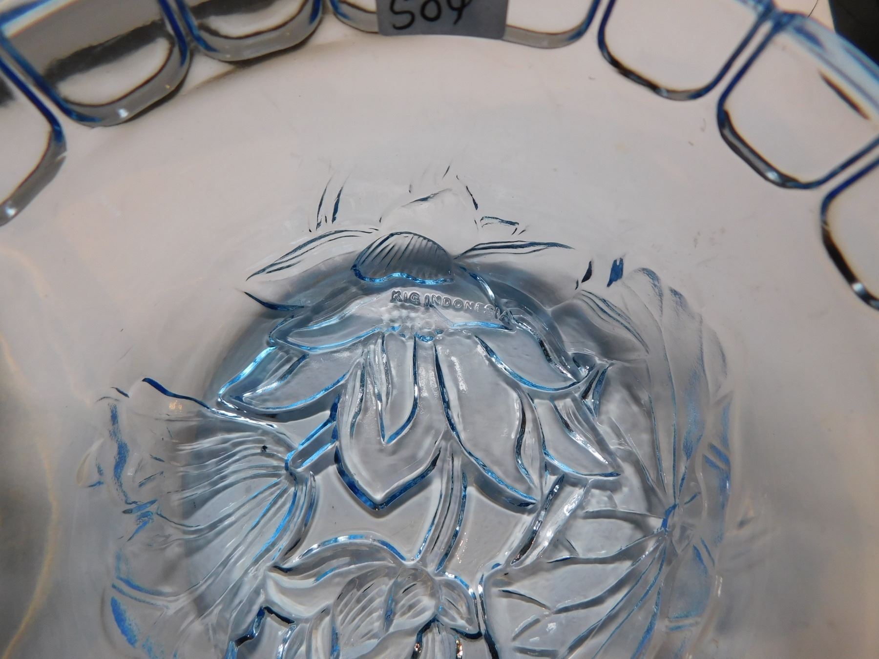 504. KIG INDONESIA EMBOSSED FLORAL BLUE TRINKET DISH