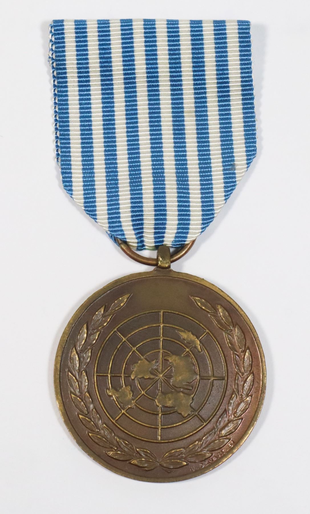 FRENCH LANGUAGE UN U.N. UNITED NATIONS MEDAL COLD WAR ERA POUR LA DEFENSE DES PRINCIPES DE LA CHARTE DES NATIONS UNIES BELGIUM BELGIAN NO KOREAN CLASP ON MEDAL