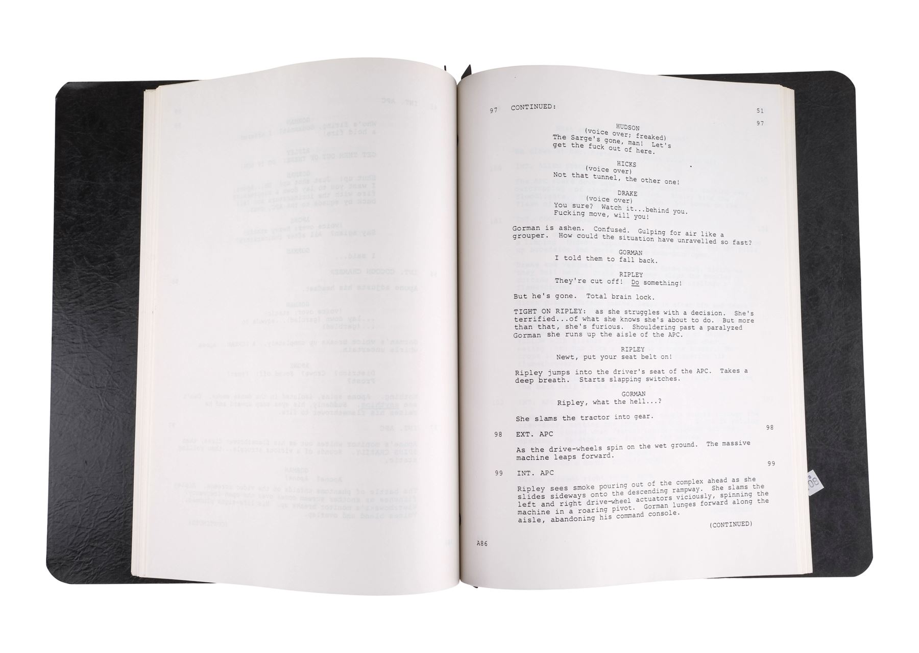 ALIENS (1986) - Bound Final Draft Script - A bound final draft script from James Cameron's Aliens. Ripley (Sigourney Weaver) and the Colonial Marines battled Alien warriors throughout the film during their doomed rescue mission to the LV-426 colony.