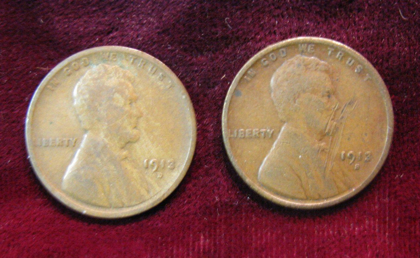 509. 1913 D & 13 S Lincoln Cents. Both VG-F. The "S" has a scratch on the obv.