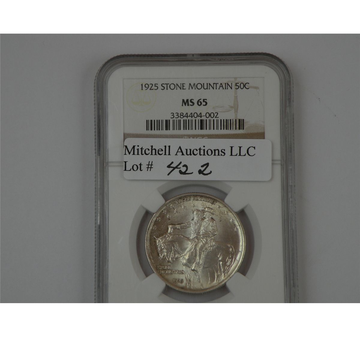 50C 1925 Stone Mountain. NGC MS65 Silver-satiny lustre is accented by traces of russet toning. Est.$125