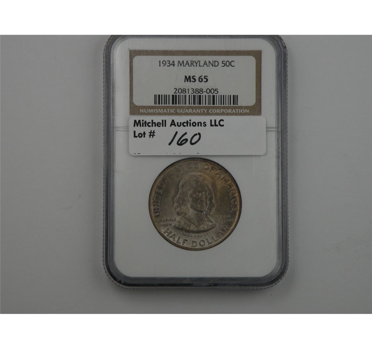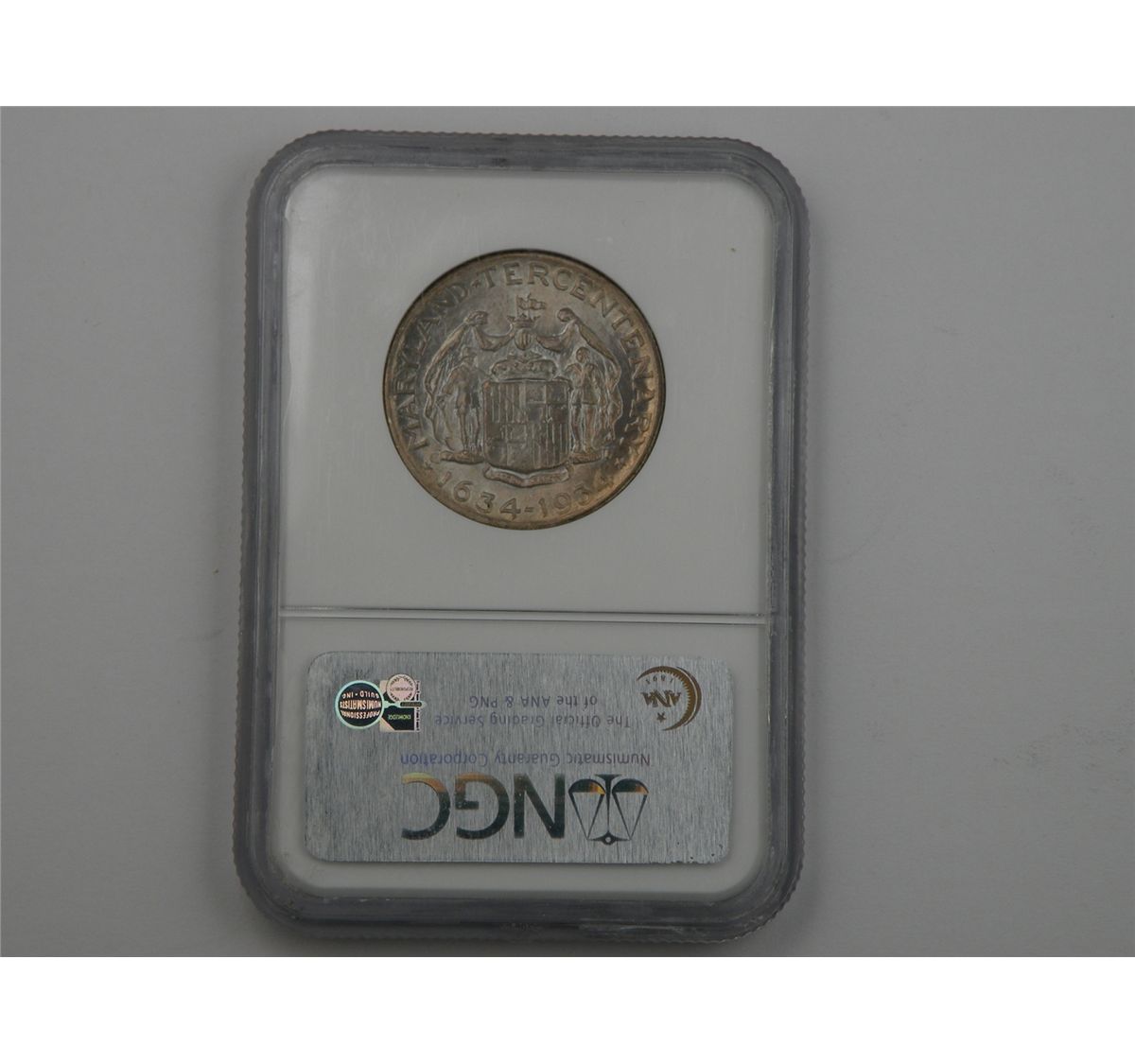50C 1934 Maryland Tercentenary. NGC MS65. Compelling unbroken velvet lustre is immersed in pleasing lilac- golden toning. A premium example. Est.$200