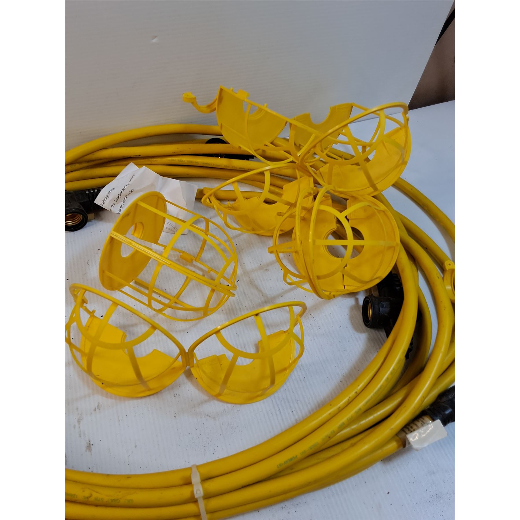 50Ft Heavy Duty Construction String Light w/(4) Shop Light Protector Covers - Yellow