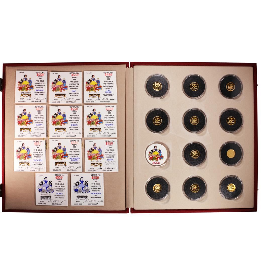 One 50th Anniversary Set of (11) 1987 Snow White 1/10 Oz. Gold Commemorative Medals in box with COA's.