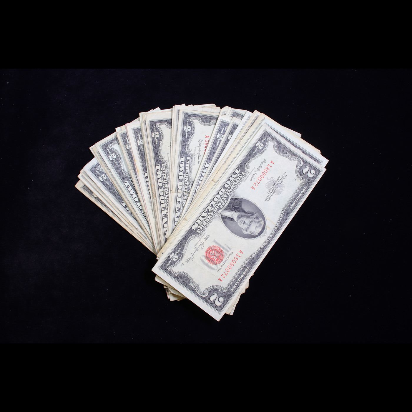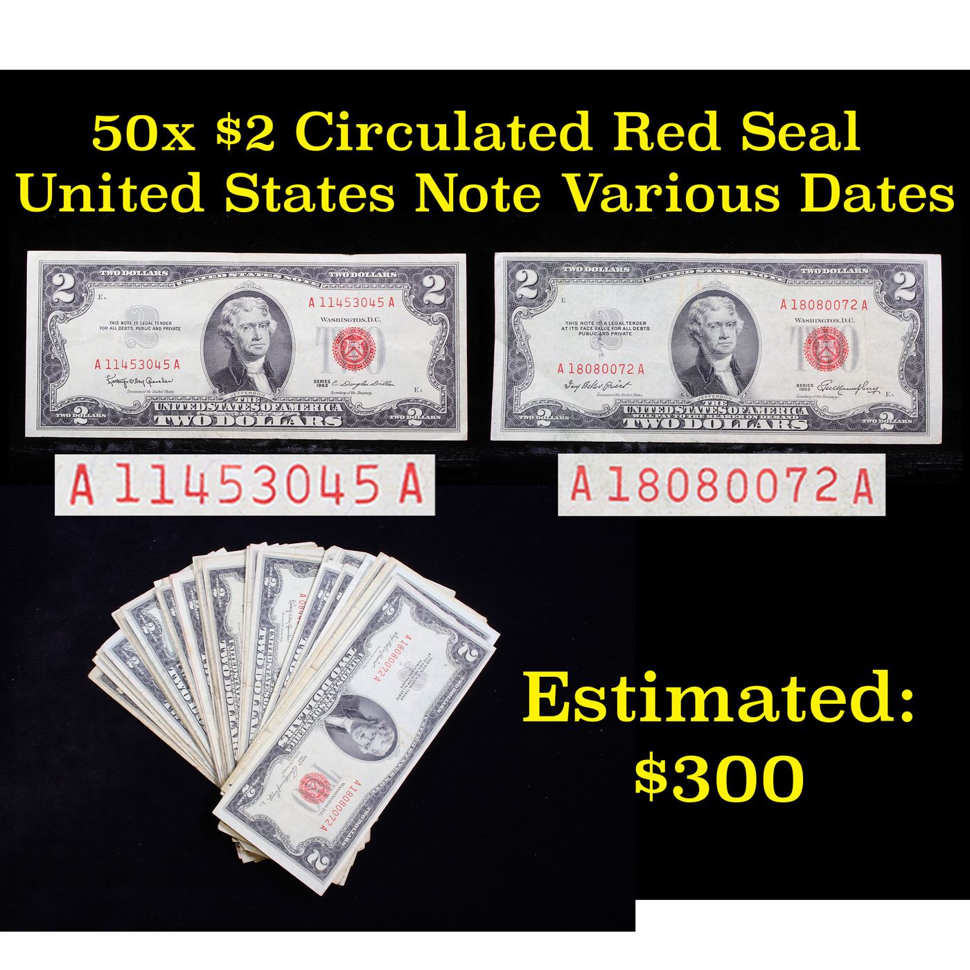 50x $2 Circulated Red Seal United States Note Various Dates.