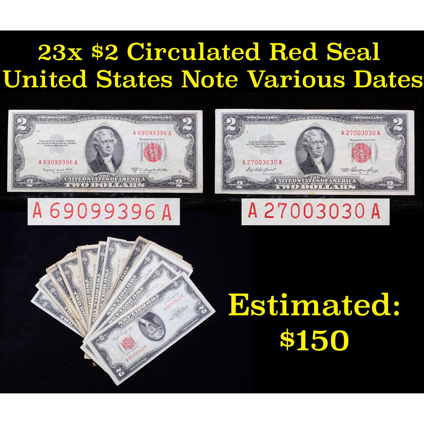 50x $2 Circulated Red Seal United States Note Various Dates.