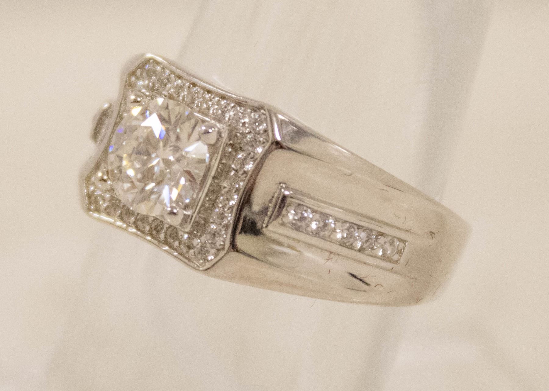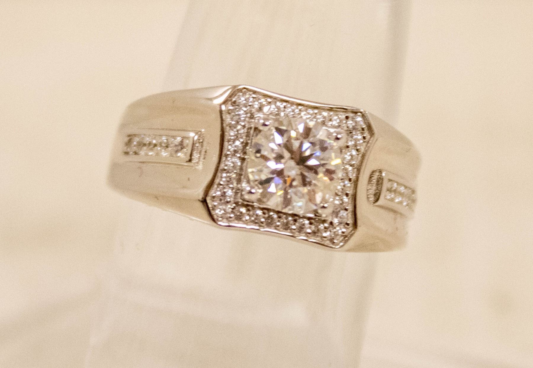 MOISSANITE STONE VVS D COLOR SET IN CENTER OF MENS RING IN 925 SILVER RING SIZE ADJUSTABLE RETAIL VALUE $825.00 **ALL ITEMS MUST BE REMOVED BY 5PM SATURDAY, JUNE 15TH 2024. ALL REMAINING ITEMS WILL BE SUBJECT TO A $6.00 PER DAY STORAGE CHARGE. ANY ITEMS REMAINING AFTER MONDAY, JULY 1ST 2024 WILL BE CONSIDERED FORFEITED. NO REFUNDS WILL BE ISSUED FOR FORFEITED ITEMS. TO SCHEDULE A PICK UP APPOINTMENT CLICK HERE