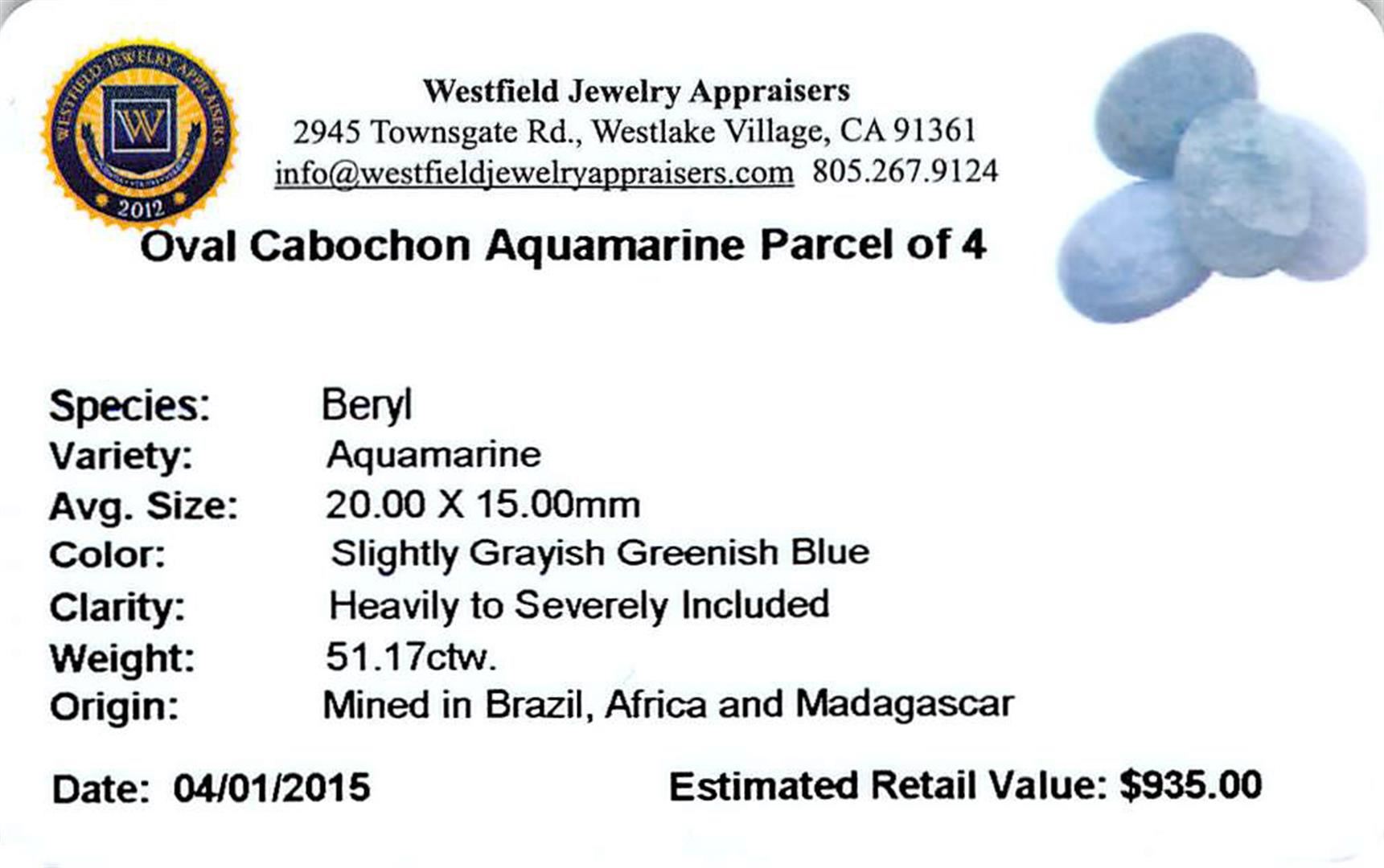 One 51.17ctw Oval Cabochon Aquamarine Parcel.