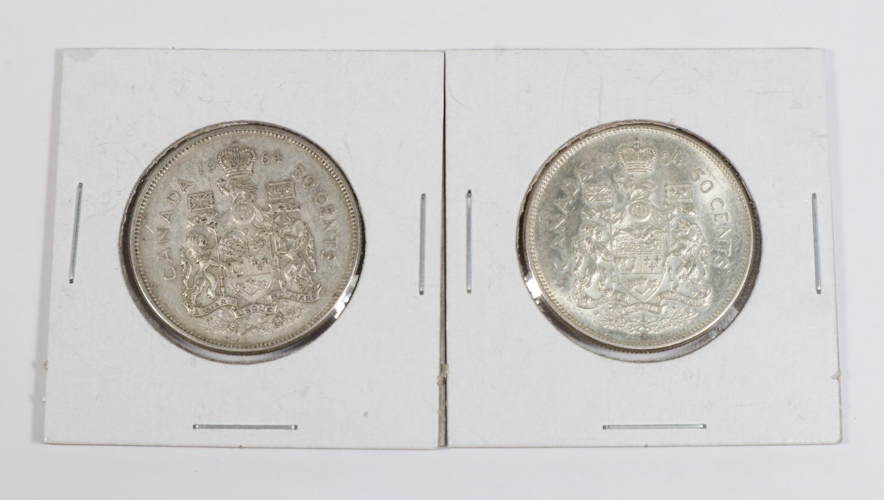 50 CENT PAIR 1964 QUEEN ELIZABETH II QEII CANADA CANADIAN SILVER CURRENCY