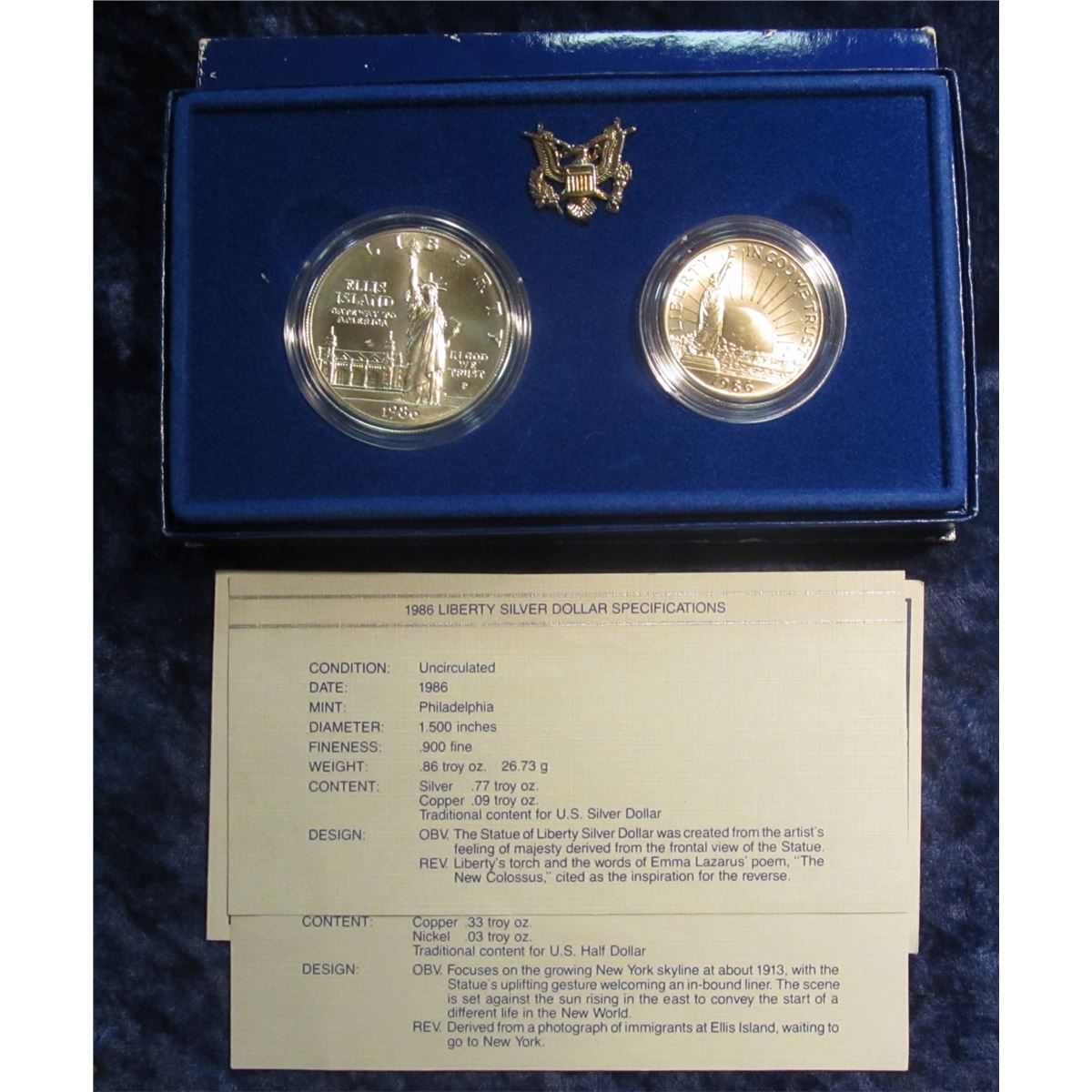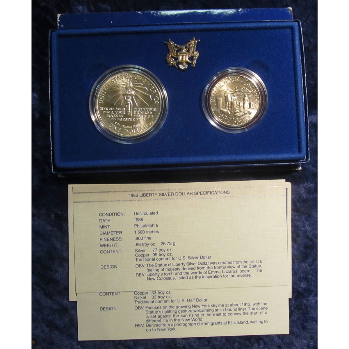 51. 1986 S Statue of Liberty Two-Piece Unc Set with Silver Dollar and Half-Dollar.