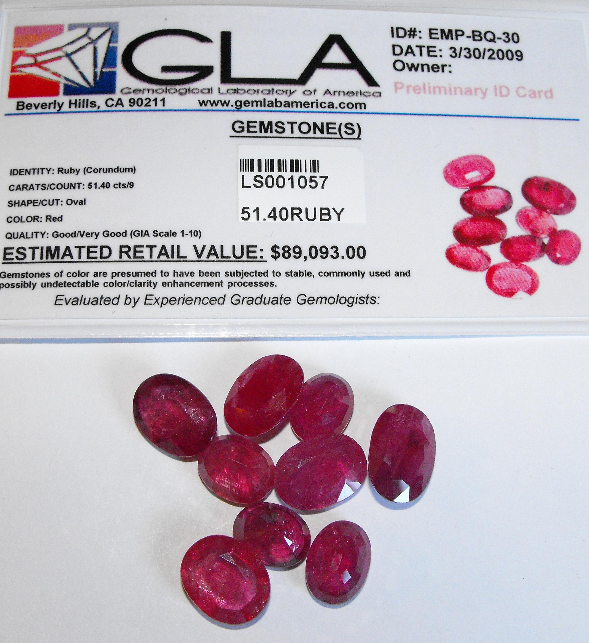 51.40 tcw. Ruby Gemstone Parcel- $ 89093 GLA Labs