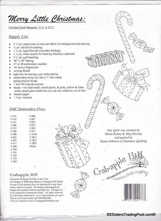 Pattern #414 'Merry Little Christmas' 51.5" x 51.5" quilt. 2008 quilt design by Meg Hawkey for Crabapple Hill Studio.