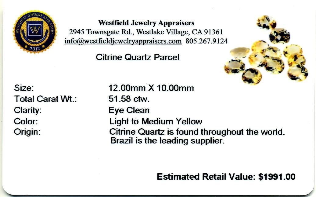 51.58cts Oval Cut Citrine Quartz Parcel. Westfield Appraised at $1991.