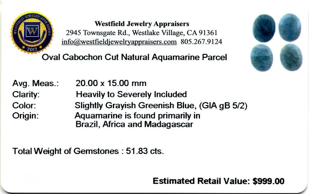 51.83cts Oval Cut Oval Cabochon Cut Natural Aquamarine Parcel. Westfield Appraised at $999.