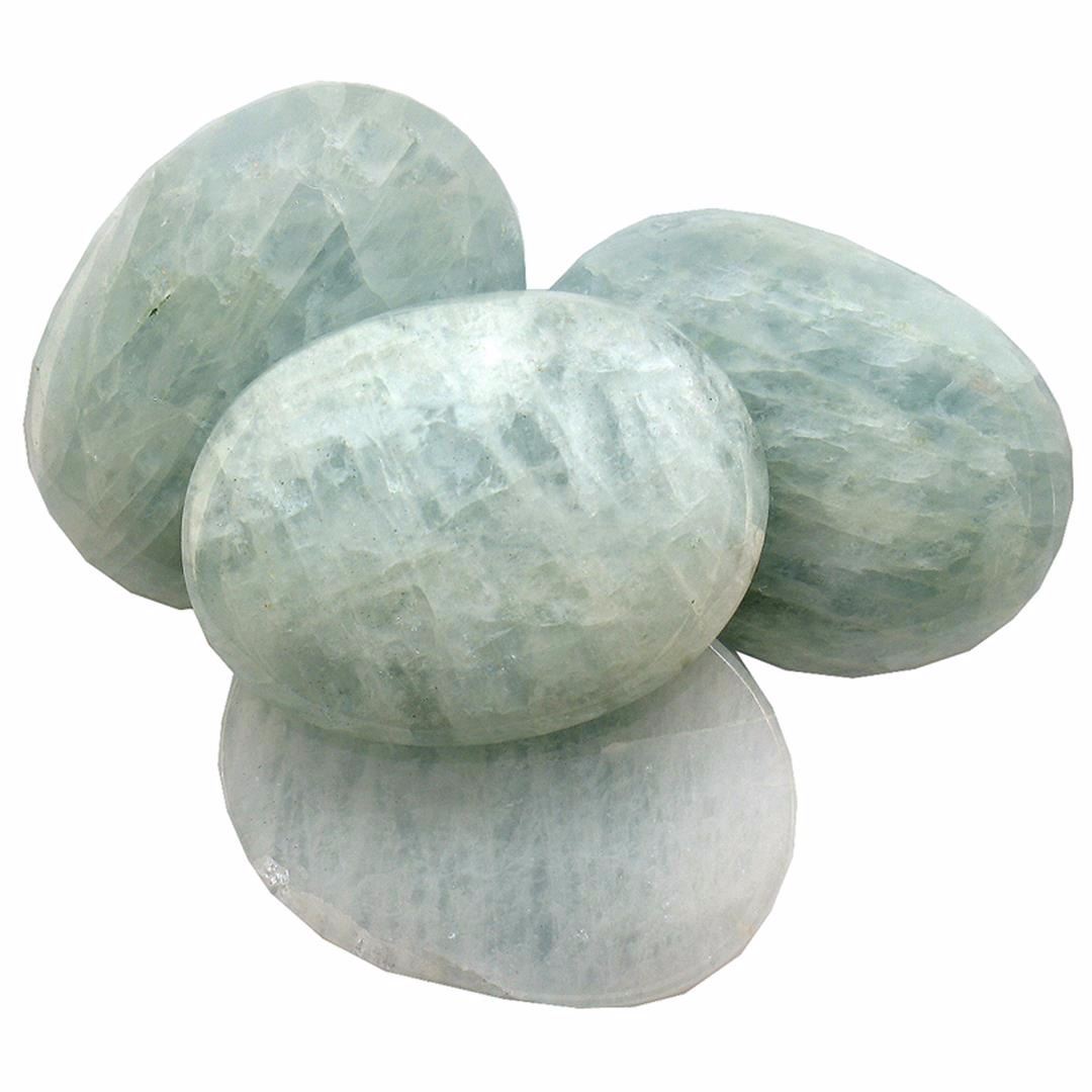 Four oval cabochon cut natural aquamarines exact total weight 51.97ct., clarity is heavily included, type I, medium, slightly grayish, very slightly greenish blue color, (GIA vslgB 5/2), cut is good. Westfield Appraised at $1,000.00.