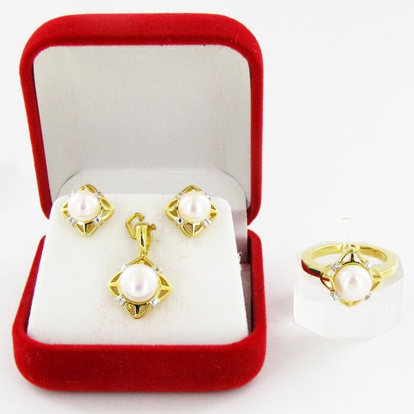 51.9ct FW Pearl Lab Diamond Yel. Gold Vermeil on Sterling Set (JEW-4161)
