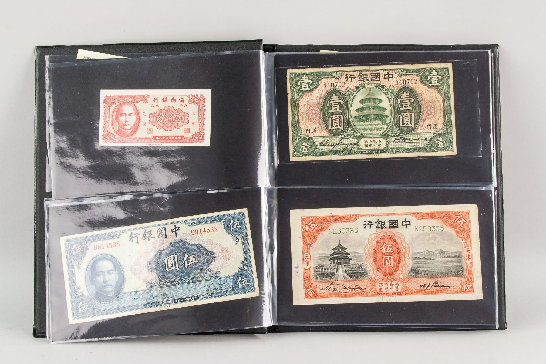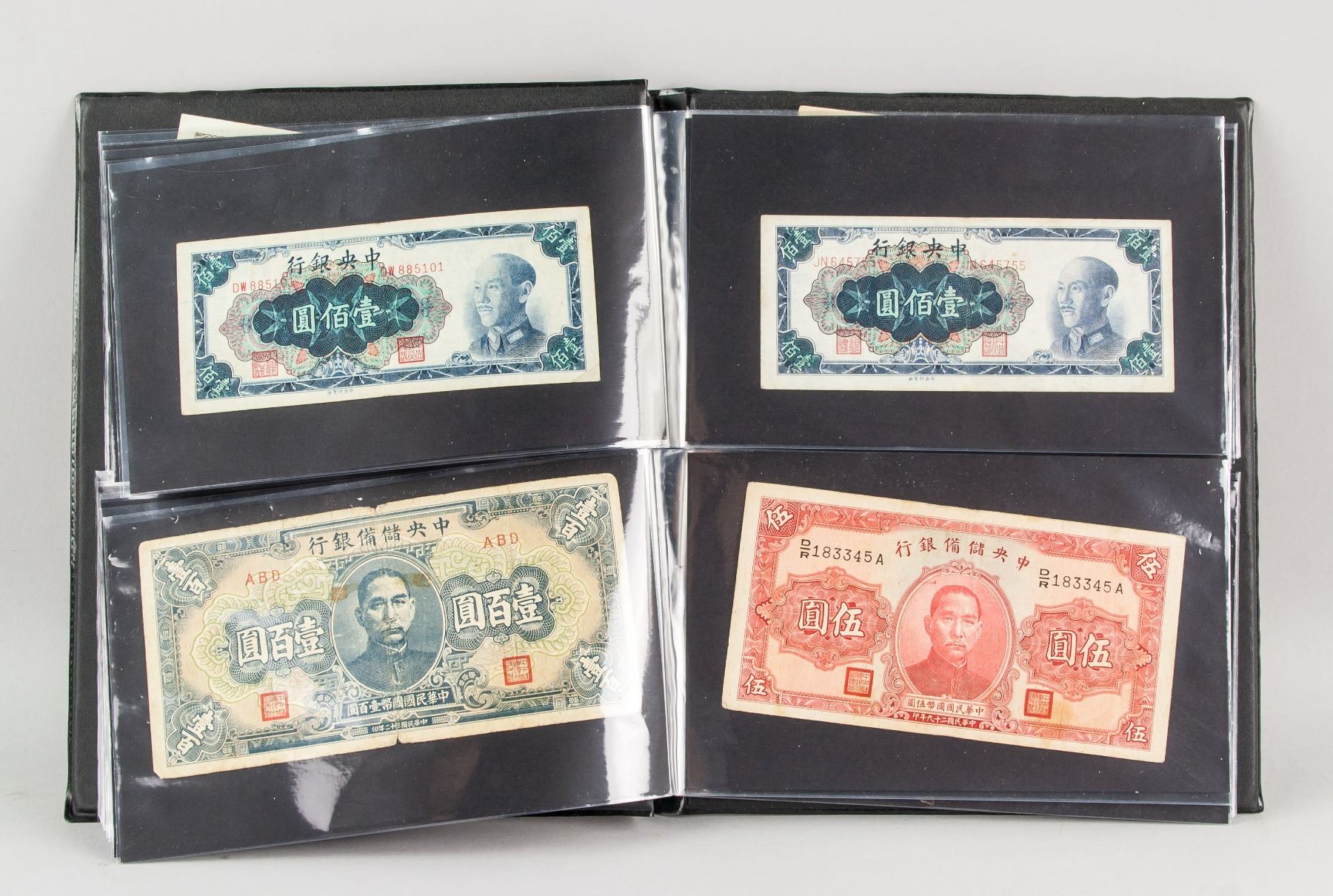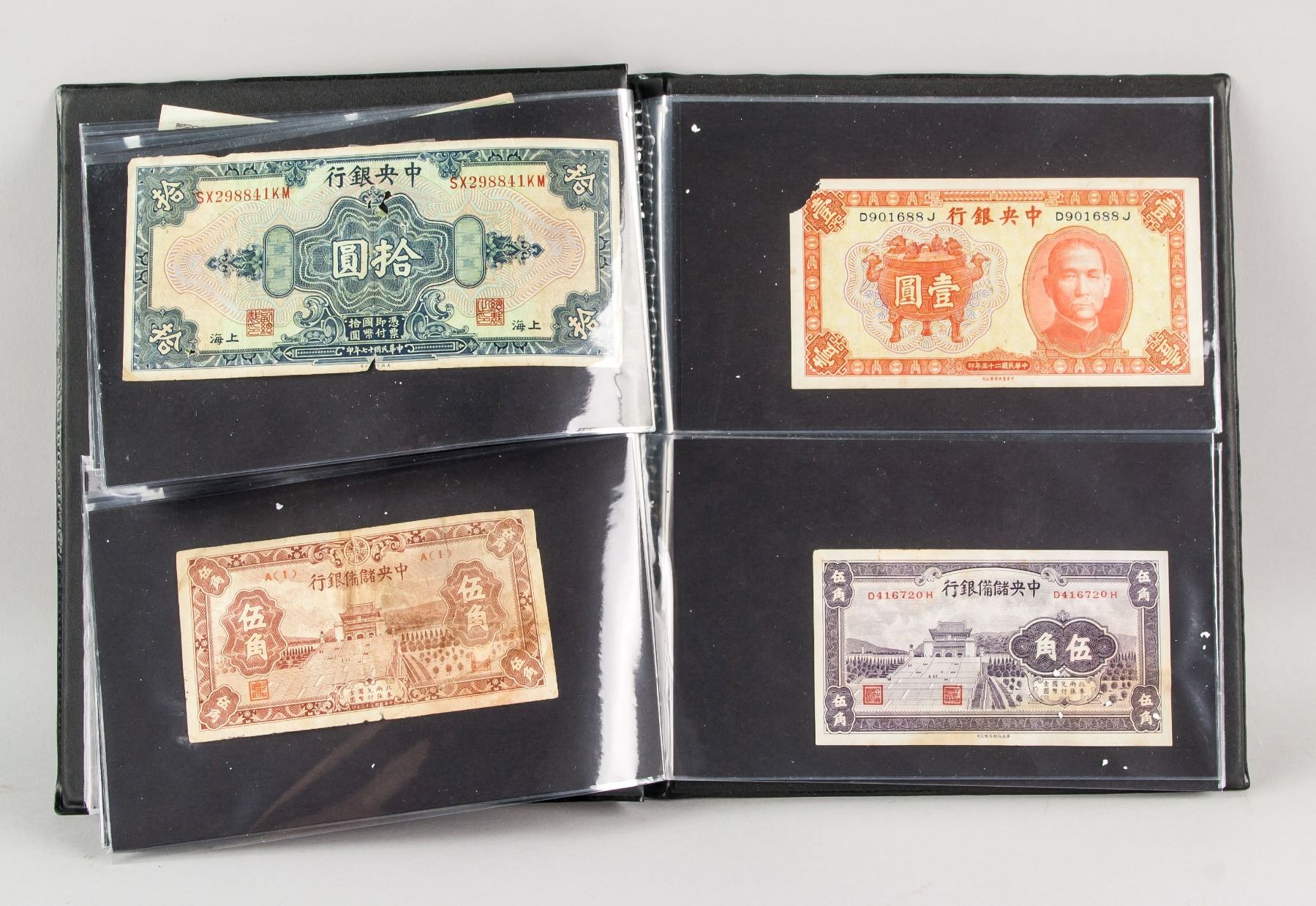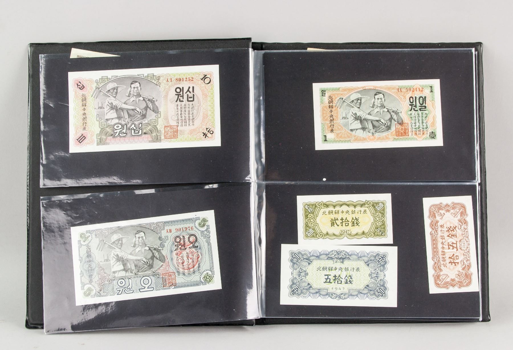 51 assorted banknotes, of 6 North Korean banknotes, 2 1980 China ration ticket, 43 China Republic banknotes, 4.5 x 6.5 cm - 8.5 x 15 cm