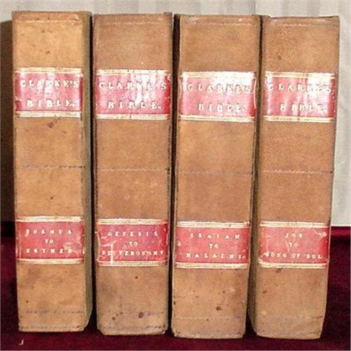 Very interesting Set of 3 volumes Commentary on the Old Testament Gospels of Matthew Mark Luke John Epistles to the Romans and Corinthians Acts of the Apostles Circa 1817 Suede and Leather England