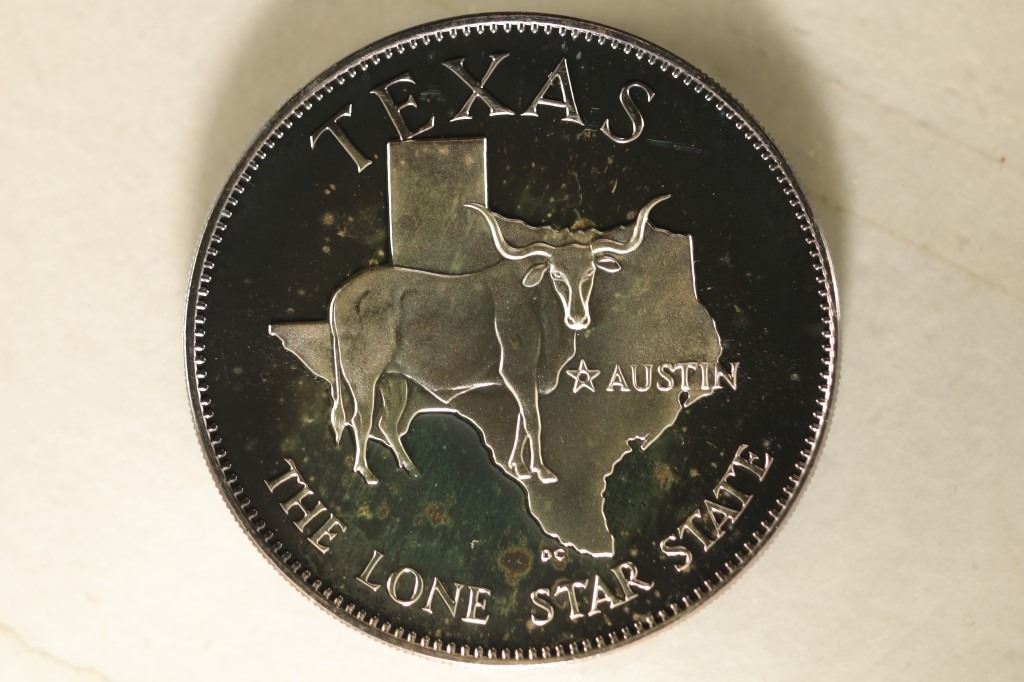STATE" ROUND WITH PURPLISH TONING AROUND THE RIM OBVERSE AND REVERSE
