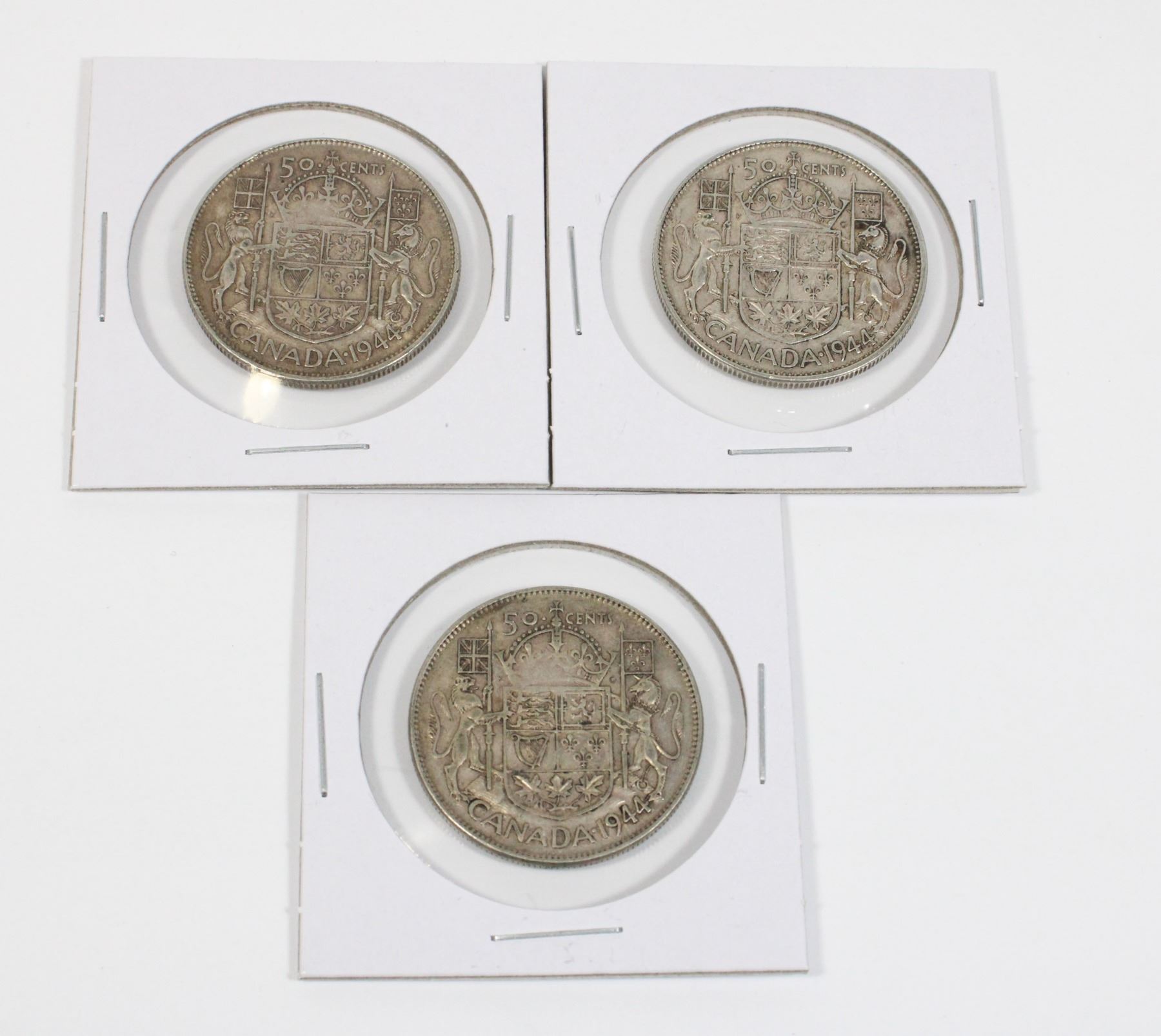 #51 WW2 CANADA 1944 SILVER 50 CENT COIN LOT OF 3