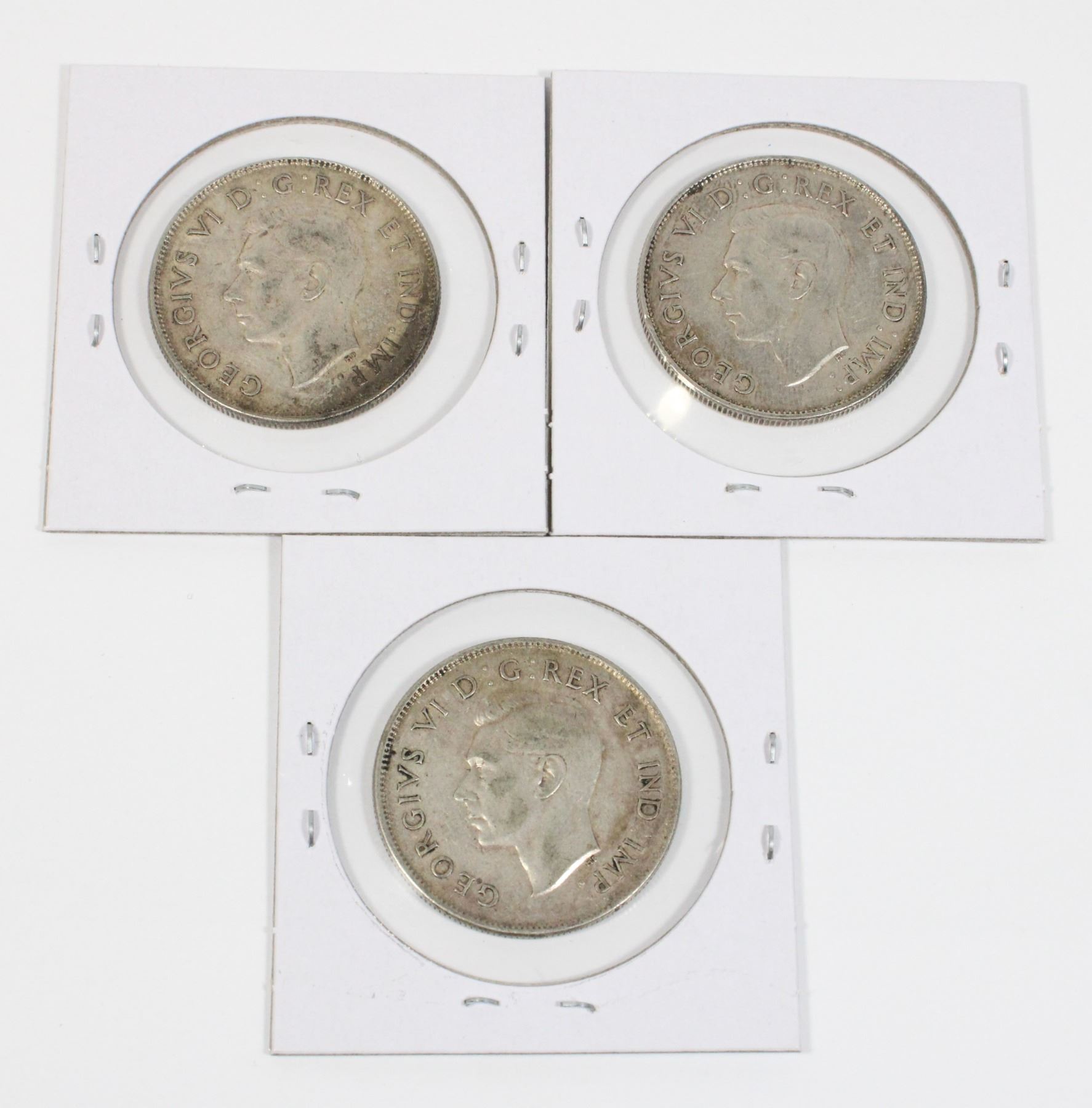 LOT OF 3 WW2 WORLD WAR TWO ERA 1944 SILVER 50 CENT HALF DOLLAR COINS KING GEORGE VI CANADA CANADIAN SILVER CURRENCY SILVER 50 CENT HALF DOLLAR COINS